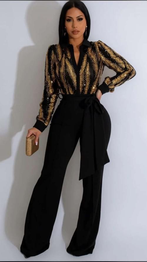 Jumsuit negro lentejuela dorada