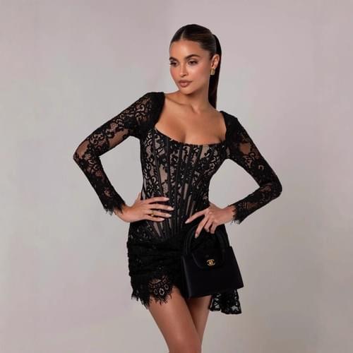 VESTIDO CORSET DE ENCAJE NEGRO CON MANGA LARGA
