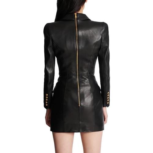 VESTIDO TIPO BLAZER VINIPIEL NEGRO CON BOTONES DORADOS Y CIERRE